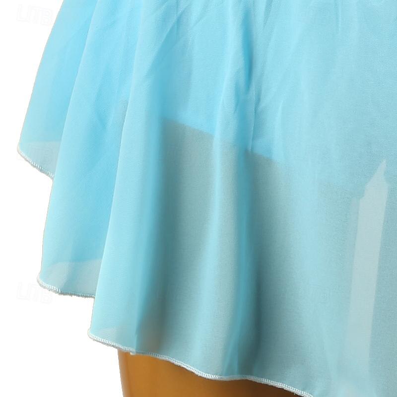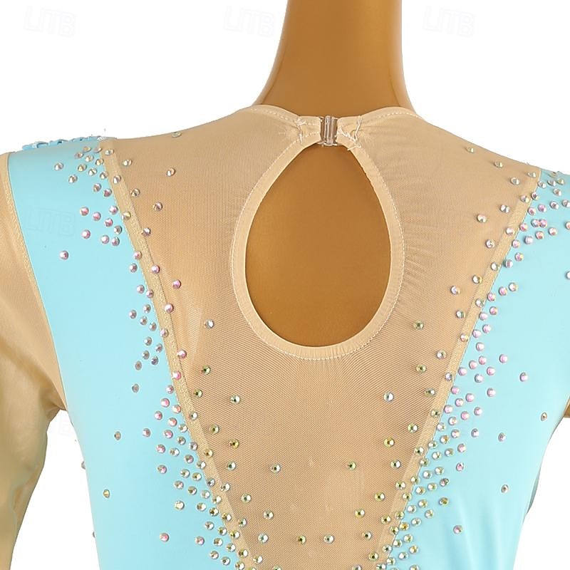 Figure Skating Dress Women's Girls' Ice Skating Dress Lake Blue Patchwork Open Back Mesh High Elasticity Training Competition Skating Wear Classic Crystal / Rhinestone Long Sleeve Ice Skating Figure 7