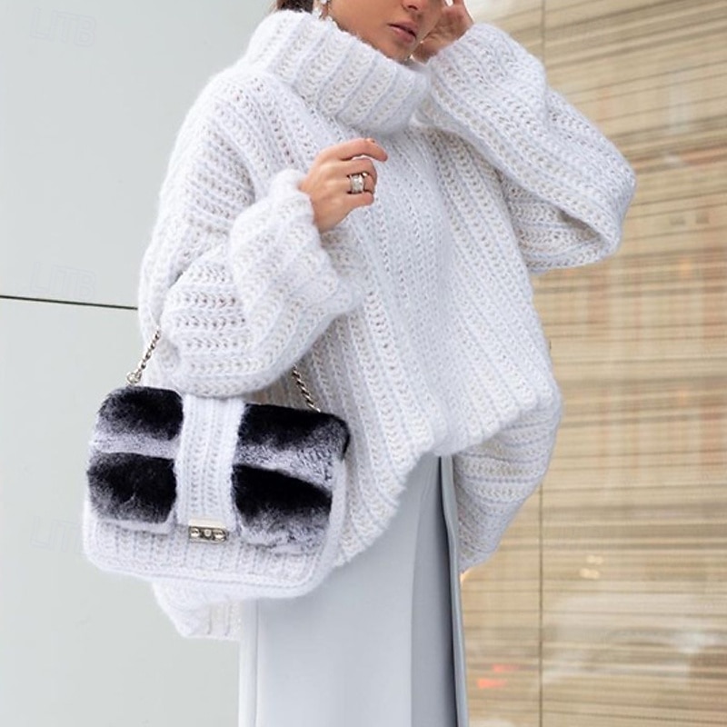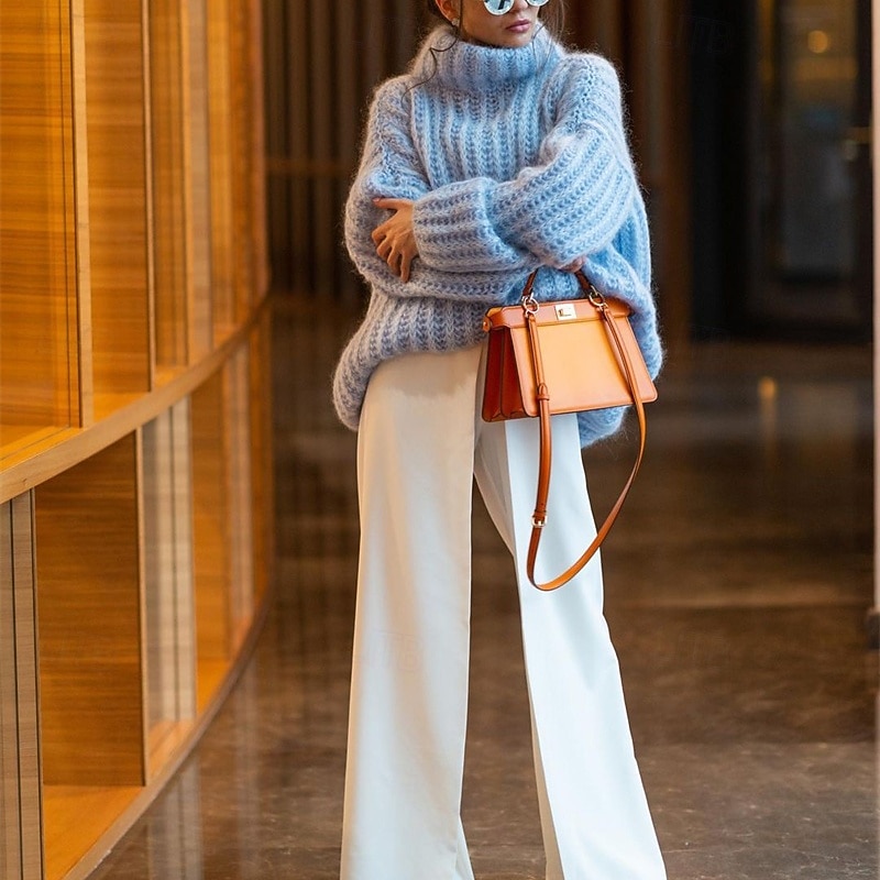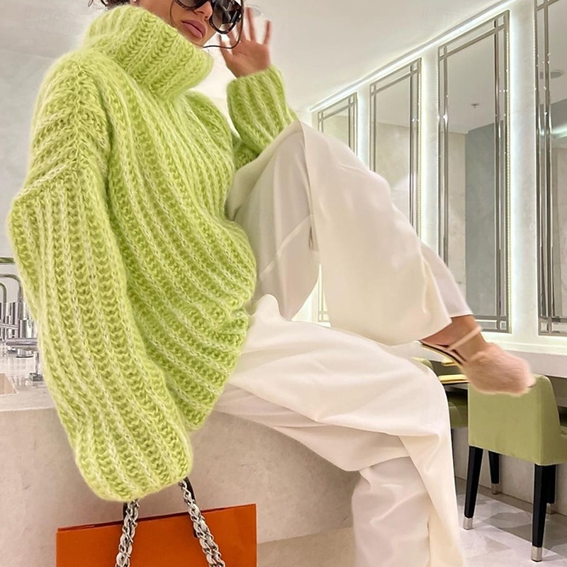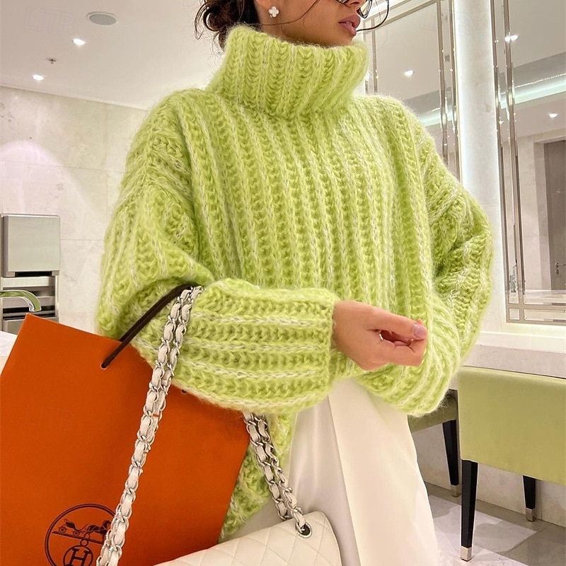 More information about Women's Sweater Pullover Daily Stylish Casual Solid Color Ribbed Turtleneck Knitted Long Sleeve Regular Tops Knit Daily Holiday Going out White Pink Fall Winter