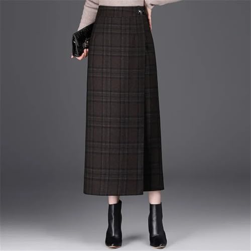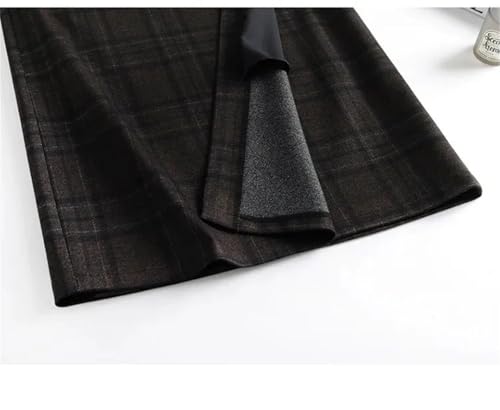 Women's Plaid Woolen Mini Skirt High Waist Thickened A- Line with Back Split Polyester Fiber Skirts 6