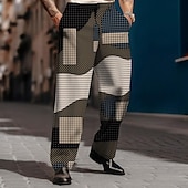 More information about Men's Geometric Plaid Dress Pants Mid Waist Vintage Business Casual Formal Dailywear Pocket Straight Leg Trousers Summer Spring Fall 3D Print Brown