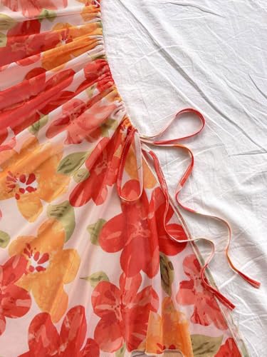 • Feature: Floral Print, Strapless, Drawstring Side, Ruched, Lettuce Trim, Sleeveless, Bodycon, Mini Length, Boho Tube Top Dress for Women