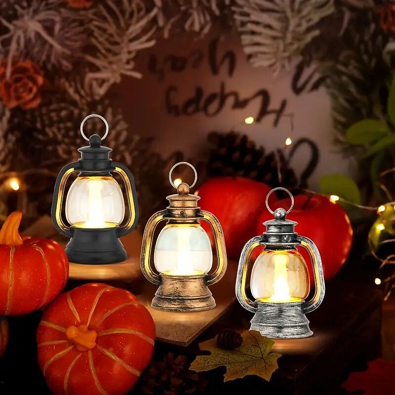 More information about 6/12/24PCS Christmas Portable Pony Lantern Retro LED Candle Light Oil Lamp Halloween Home Decoration Wedding Party Holiday Indoor Outdoor Atmosphere Decoration