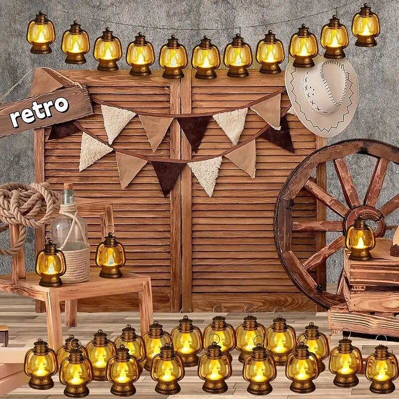 6/12/24PCS Christmas Portable Pony Lantern Retro LED Candle Light Oil Lamp Halloween Home Decoration Wedding Party Holiday Indoor Outdoor Atmosphere Decoration 20