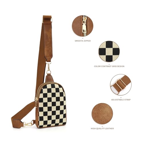 Sling Bag Crossbody Bags For Women Plaid Striped Fanny Packs Chest Bag for Work Shopping 4