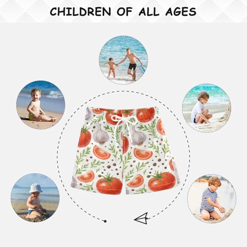 DOMIKING Tomato Garlic White Boys' Swimwear Quick Dry Swim Trunks with Pockets for Child Boy Adjustable Waist L 2