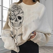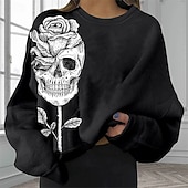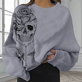 More information about Women's Pullover Sweatshirt Graphic Skull Halloween Active Fashion Streetwear Long Sleeve Crew Neck Round Neck Regular Tops Street Dailywear Casual Print Black Beige Gray Fall Winter