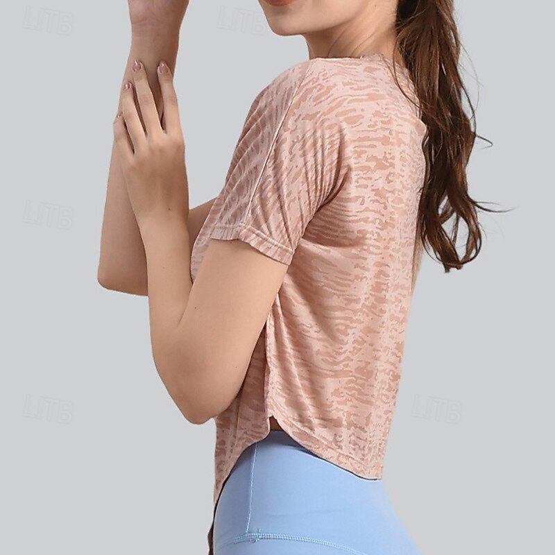 HOT ! Women's Yoga Shirts Crew Neck Quick Dry Breathable Short Sleeve Sports Solid Color Top For Gym Running Fitness Activewear