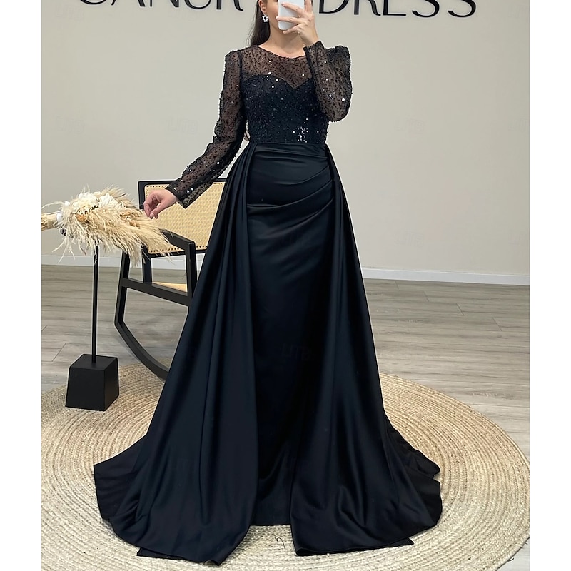 More information about Mermaid / Trumpet Evening Gown Elegant Dress Carnival Formal Floor Length Long Sleeve Illusion Neck Detachable Satin with Pearls Overskirt