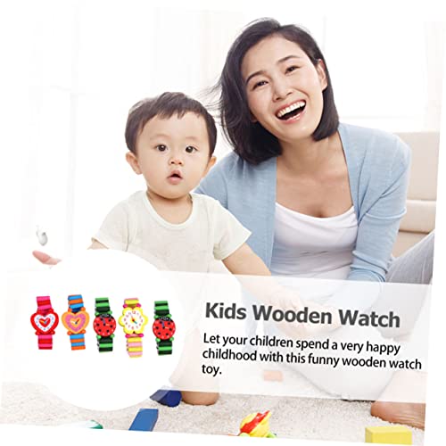 BESTYASH 5 Pcs Wooden Educational Watches Safe Non Toxic Material Cartoon Design for Early Learning and Recognition Boys Random Color 5