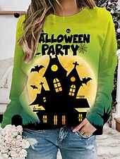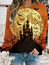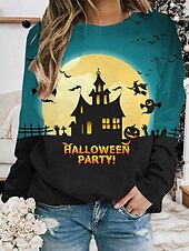 More information about Halloween Women's Pullover Sweatshirt Hoodies Castle Graphic Fashion Casual Long Sleeve Crew Neck Round Neck Regular Tops Street Dailywear Print Blue Orange Green Spring Fall Winter