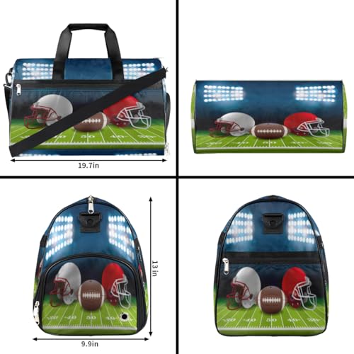 Football Helmet Dry Wet Depart Duffle Overnight Bag with Shoes Compartment & Wet Pockets, Water Resistant Weekender Travel Gym Pouch For Swim Gymnastics Ballet Sleepovers 1