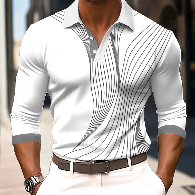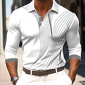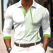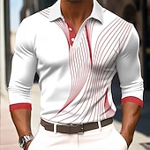 More information about Men's Geometic Line Polo Long Sleeve Polo Shirts Collared Shirts Business Casual Business Athleisure Daily Wear 3D Print Buttons Spring Fall Winter Red Blue Purple