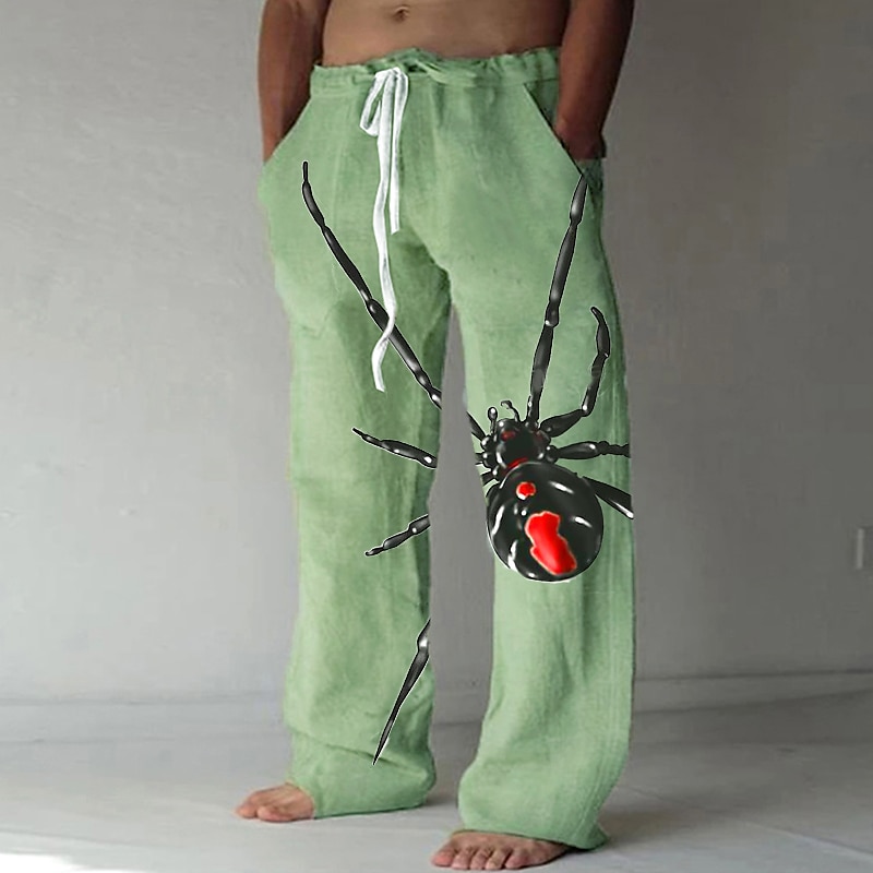 More information about Men's Trousers Summer Pants Beach Pants Straight Elastic Drawstring Design Front Pocket Straight Leg Spider Graphic Prints Comfort Soft Casual Daily Fashion Big and Tall White Green