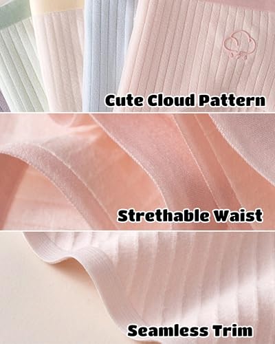 Cute Cartoon Panties for Teen Girls Cloud-like Cotton Sweat-wicking Underwear Wide Waistband Mid Rise Briefs 5-Pack 5
