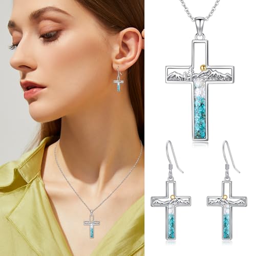 • Turquoise Cross Necklace Size: Cross necklace 32*22.5mm, with 18+2 inches extension sterling silver chain. You can adjust the length of the chain as needed.