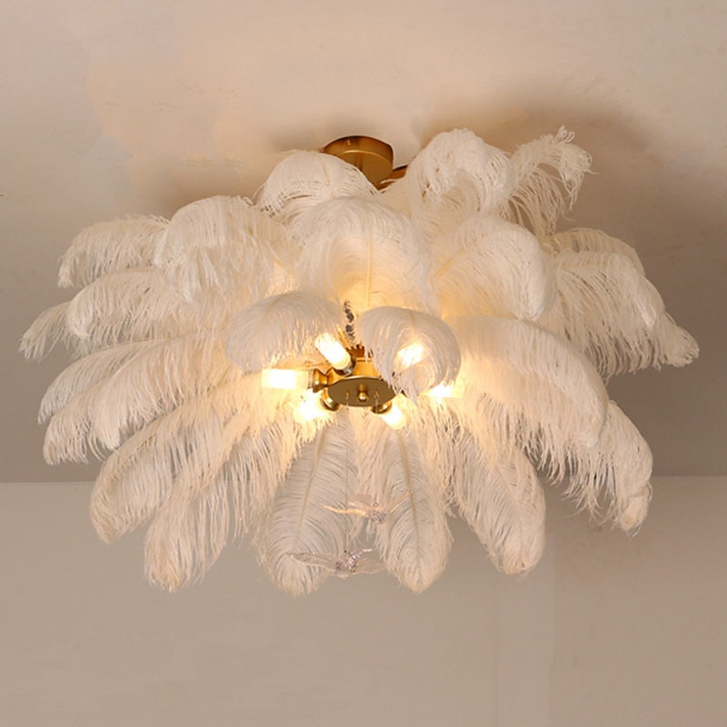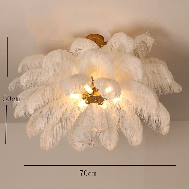 LED Pendant Light Chandelier Gorgeous Extra Large 70cm 6-Light White Ostrich Feather Bouquet Pendant Light Romantic Mounted Lighting Fixture for Restaurant Bedroom 1