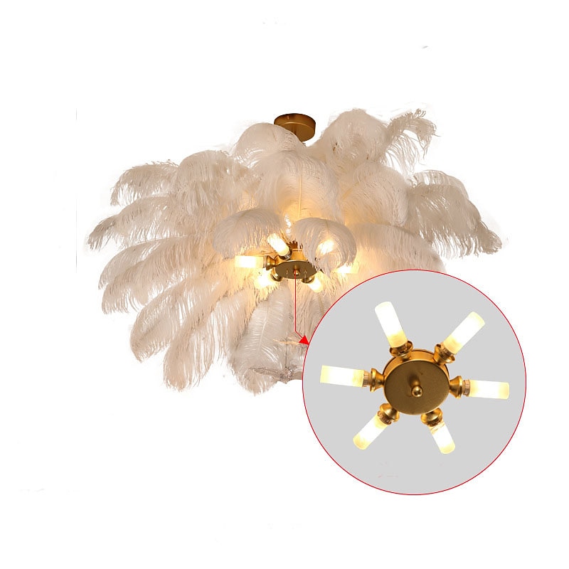 LED Pendant Light Chandelier Gorgeous Extra Large 70cm 6-Light White Ostrich Feather Bouquet Pendant Light Romantic Mounted Lighting Fixture for Restaurant Bedroom 10