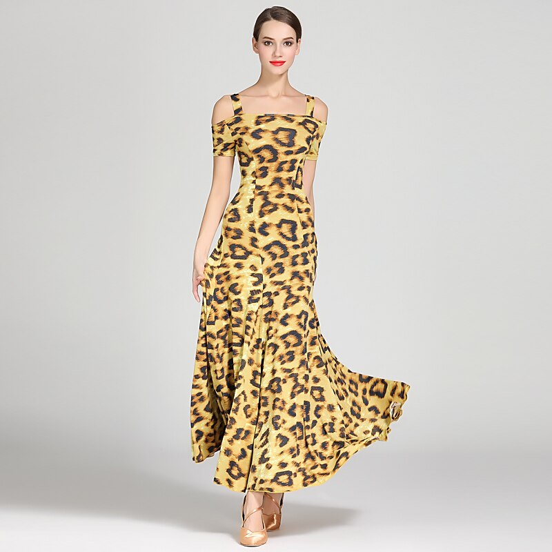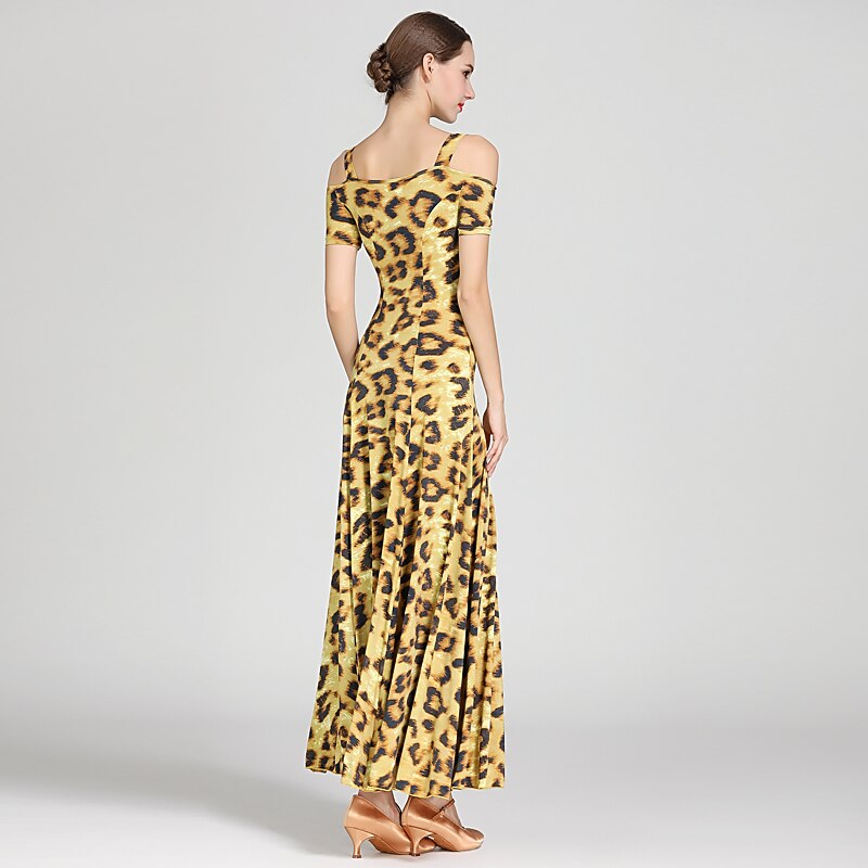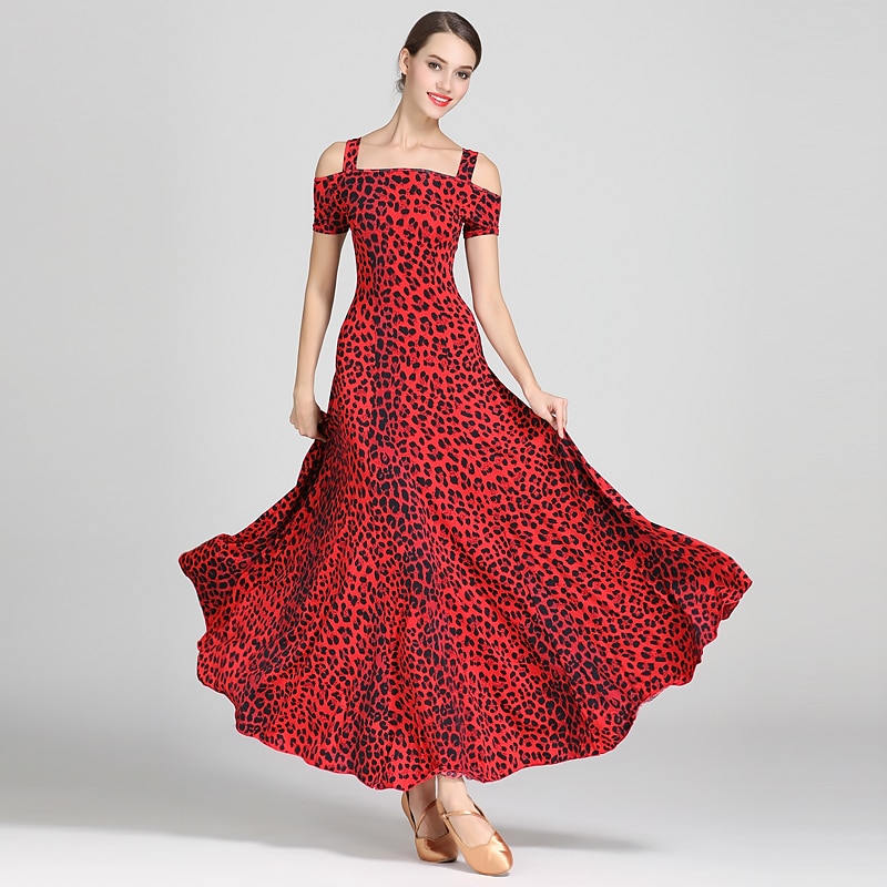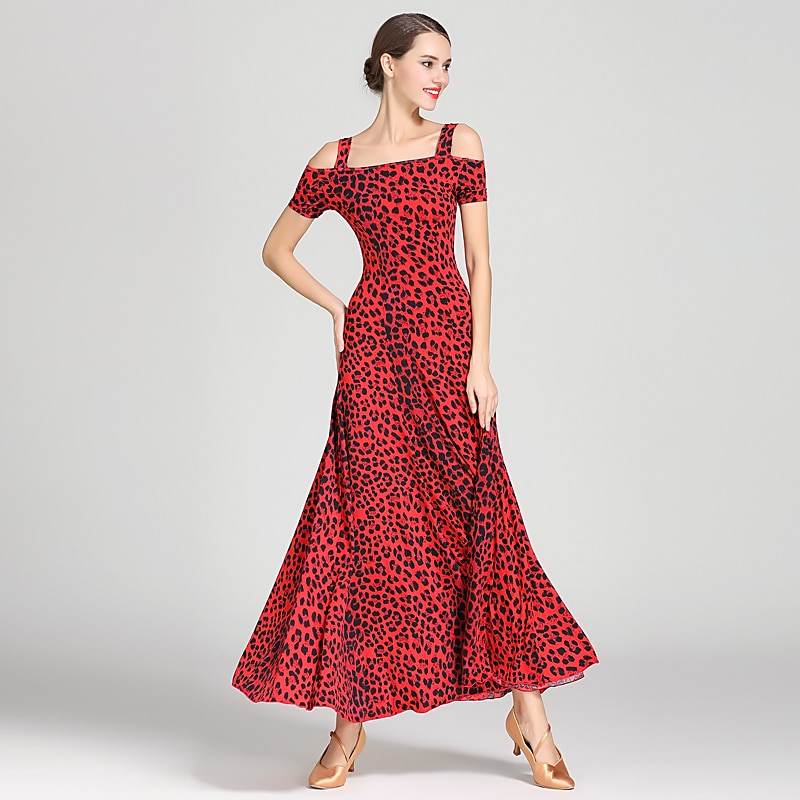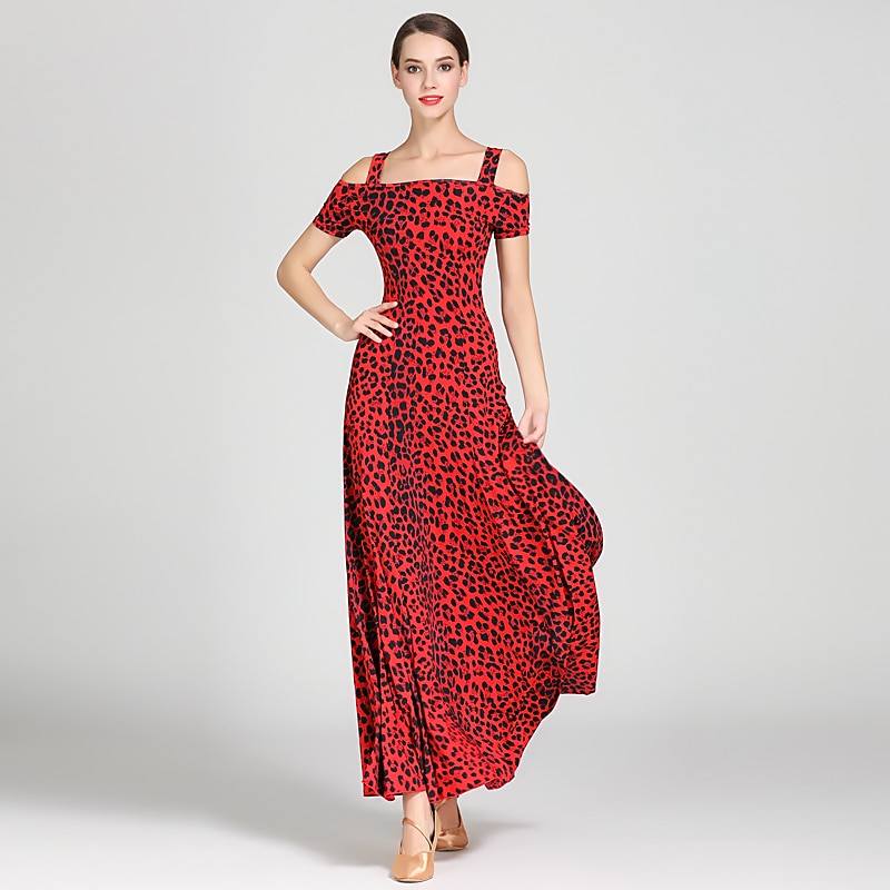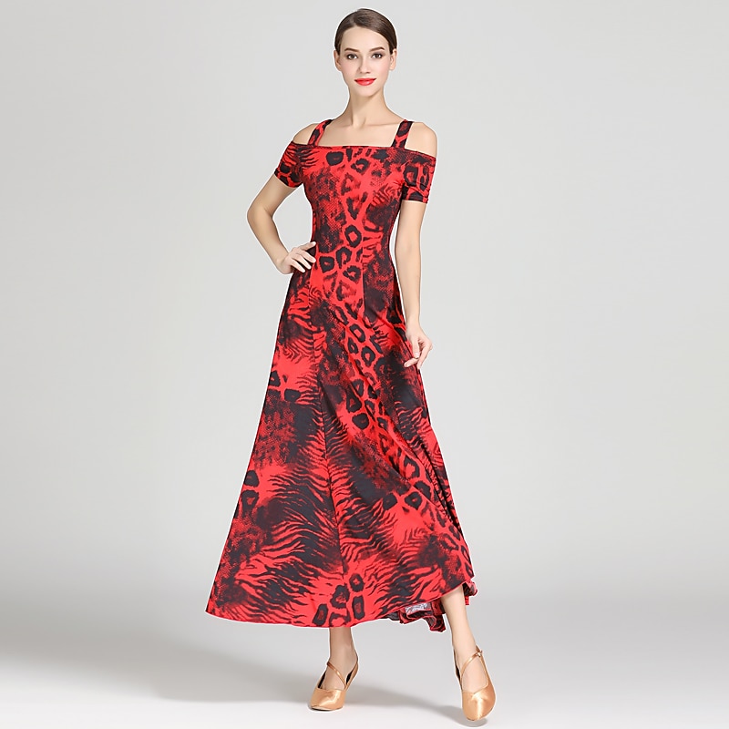 Ballroom Dance Dress Draping Pattern / Print Women's Training Performance Short Sleeve High Ice Silk 5