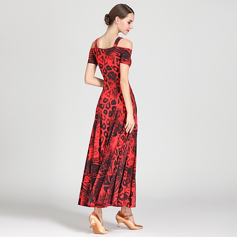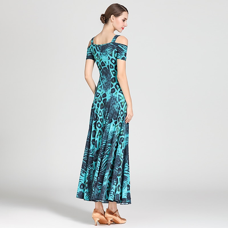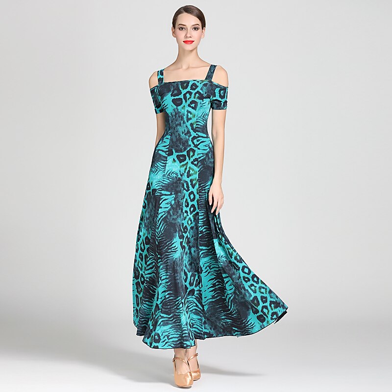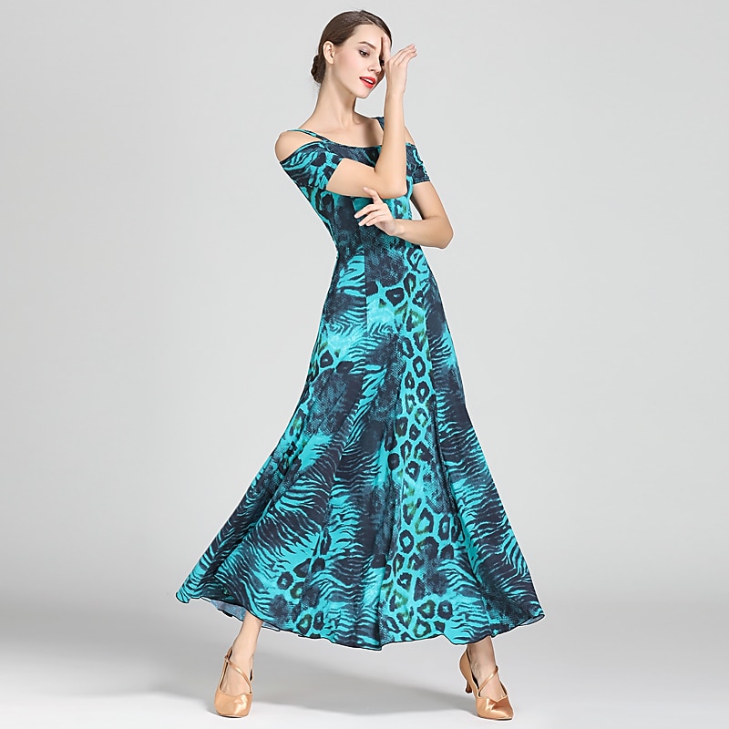 Ballroom Dance Dress Draping Pattern / Print Women's Training Performance Short Sleeve High Ice Silk 3