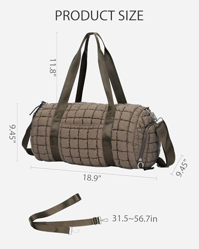 More information about Lushandy Quilted Duffel Bag for Women, Puffer Gym Duffle Bag with Shoe Compartment Puffy Duffle Bag for Travel Overnight Carry On Bag Workout Weekend Bag, Brown
