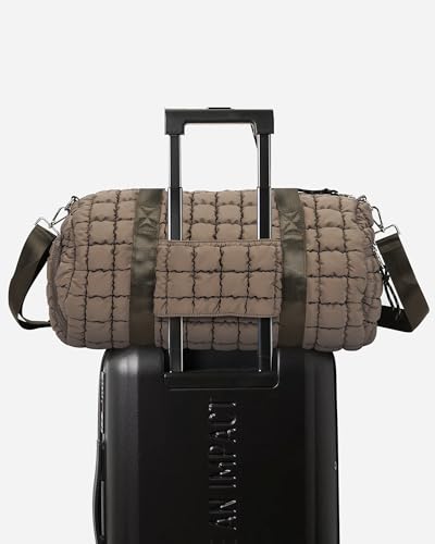 Lushandy Quilted Duffel Bag for Women, Puffer Gym Duffle Bag with Shoe Compartment Puffy Duffle Bag for Travel Overnight Carry On Bag Workout Weekend Bag, Brown 7
