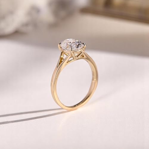 HOT ! Solid Gold Split Shank Oval Cut Moissanite Engagement Ring, Solitaire Promise Ring, Minimalist Proposal Ring, Birthday Gift for Women Wife