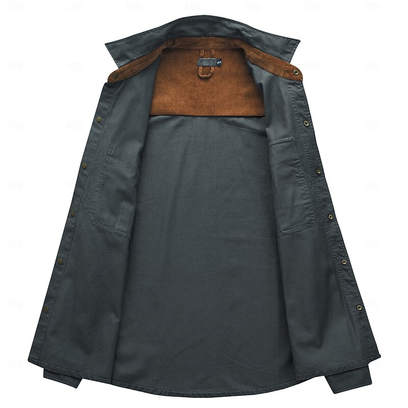 Men's Shirt Summer Shirt Casual Shirt Button Up Shirt Cargo Shirt Black Navy Blue Green khaki Long Sleeve Solid Color Collar Vacation Daily Clothing Apparel Fashion Casual Comfortable 9