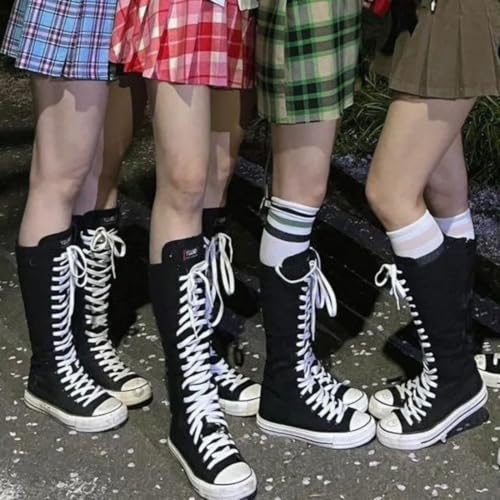 More information about Women's Gothic Canvas Knee High Boot Lace Up Side Zip High Dance Boots Teen Girls Punk Y2K Sneaker Boots School Shoes
