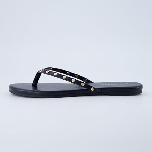 • 𝗦𝘁𝘂𝗱𝗱𝗲𝗱 𝗧𝗵𝗼𝗻𝗴 𝗦𝘁𝗿𝗮𝗽 – Gold-tone rivets add bold style to this flip flop sandal for an elevated, trendy touch.