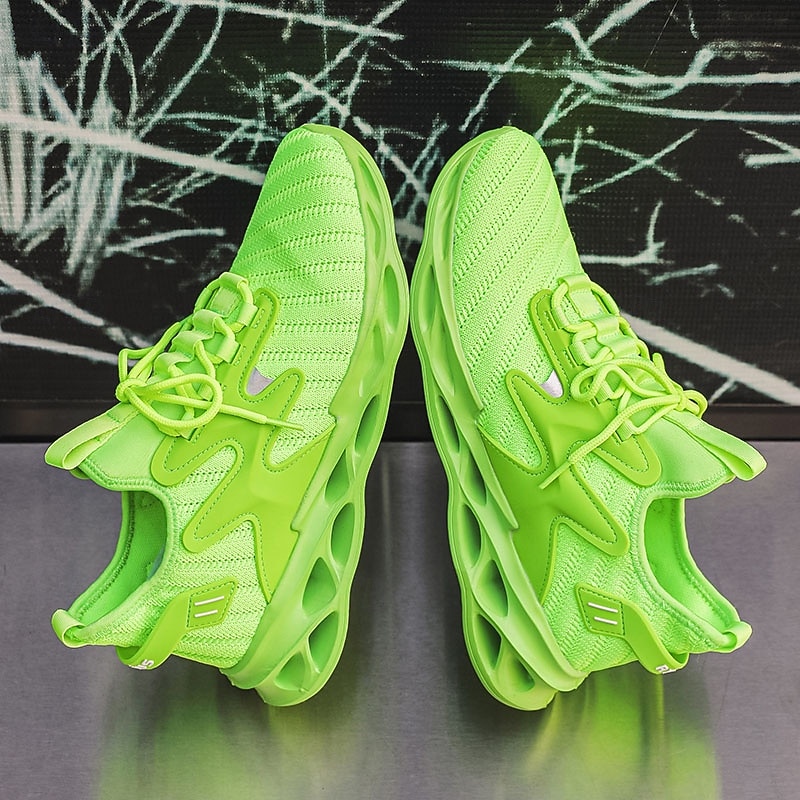 HOT ! Men's Vibrant Neon Green Athletic Sneakers with Innovative Design, Perfect for Running and High-Impact Sports