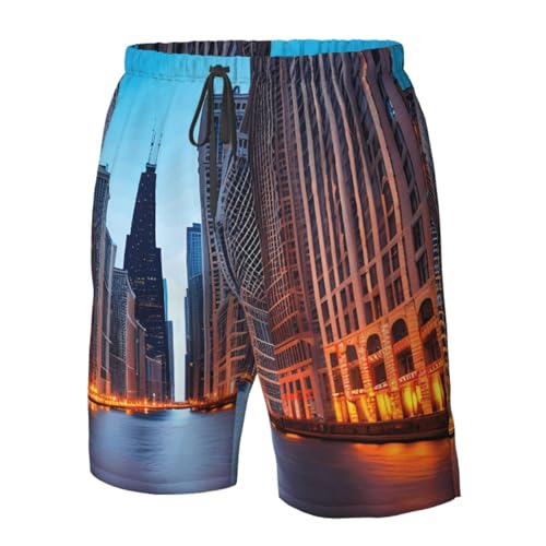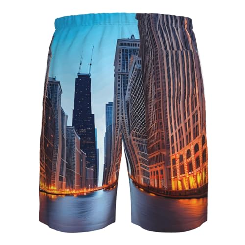 Chicago Illinois USA Print Mens Casual Shorts Drawstring Summer Beach Stretch Shorts Novelty Swimtrunks 1