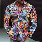 More information about Men's Color Block Shirt Button Up Shirt Long Sleeve Artistic Abstract Outdoor Street Casual Daily Fall & Winter Turndown Buttons Print Blue