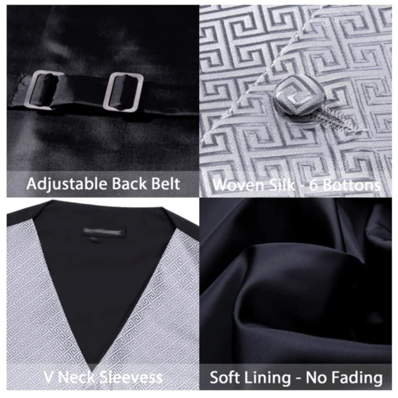 Silver Silk Vests Men Formal Suit Waistcoat For Tuxedo Pattern Ties Handkerchief Cufflinks Set Vest 4