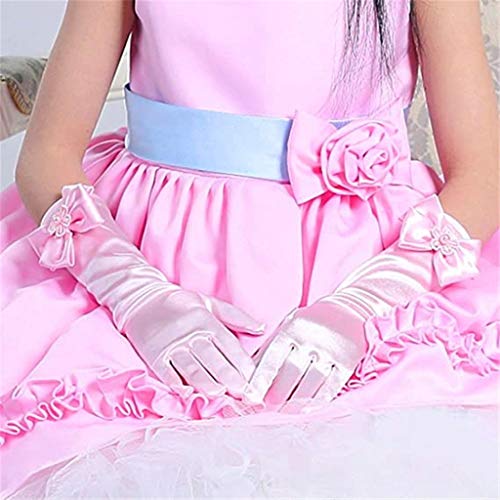 6 Pairs Combo#3 Kid Stretch Satin Long Finger Pearl Bow Dress Gloves for Girl Children Party 4