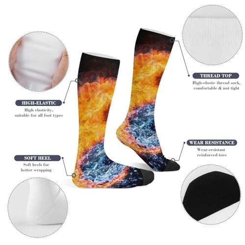 HOT ! Fire and Water - Yin Yang Over The Calf Socks for Men and Women Lightweight Mid Socks Athletic Running Stockings