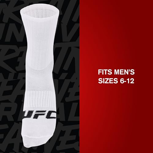 • COMFORTABLE FIT: Designed for durability and all-day wear, these UFC socks feature a secure ribbed fit, and cushioned soles; They can be easily pulled on for a cozy and comfortable fit, and fit men's feet sizes 6 to 12; Whether you’re training, working, or relaxing, these crew socks are built to keep up with your pace