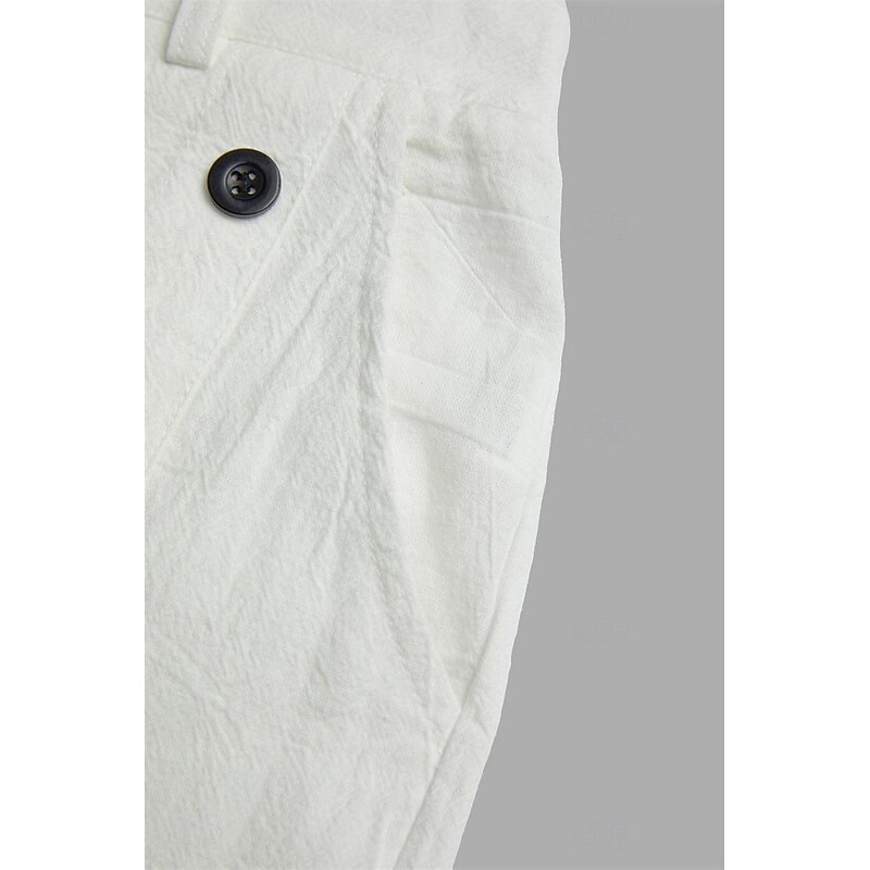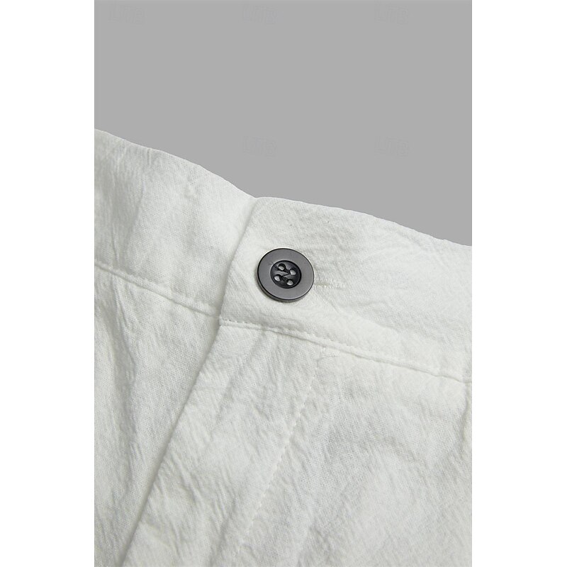 More information about Men's Shorts Linen Shorts Summer Shorts Pocket Side Button Straight Leg Solid Color Comfort Breathable Knee Length Casual Daily Vacation Fashion White Blue Inelastic