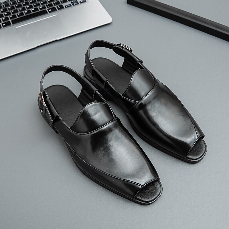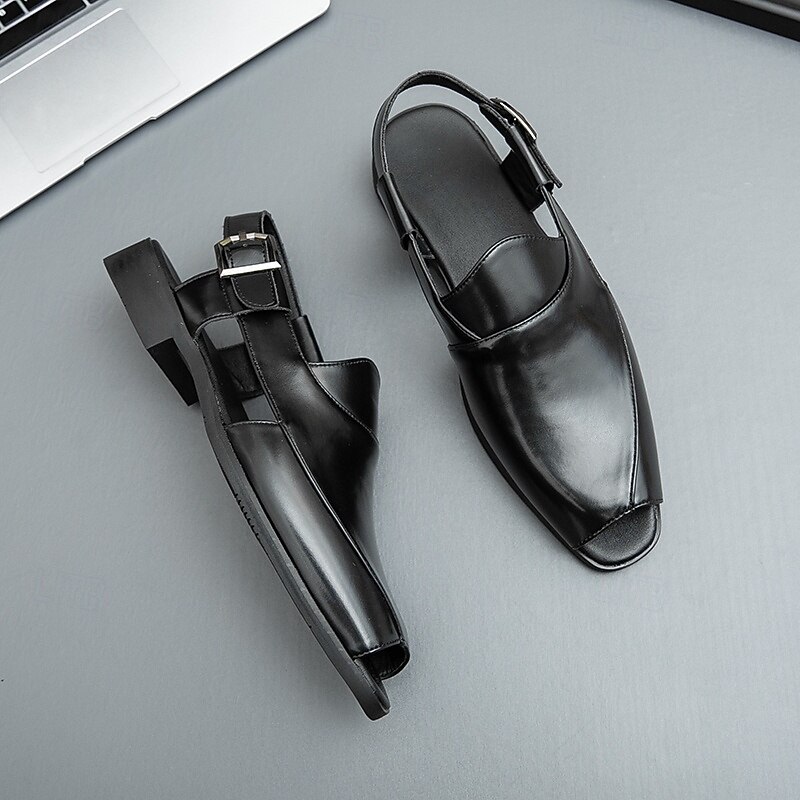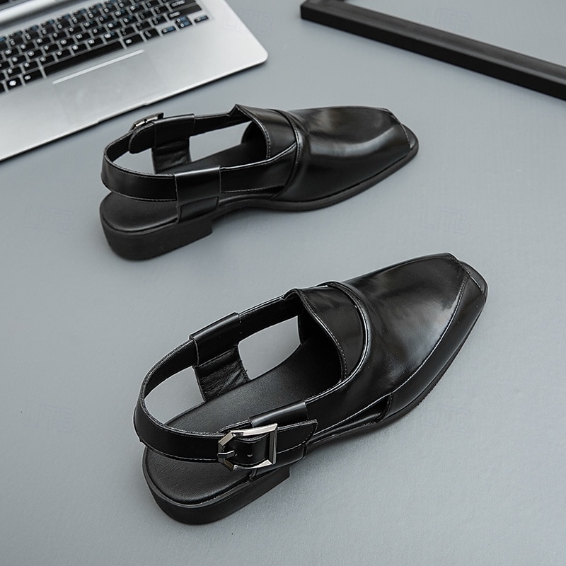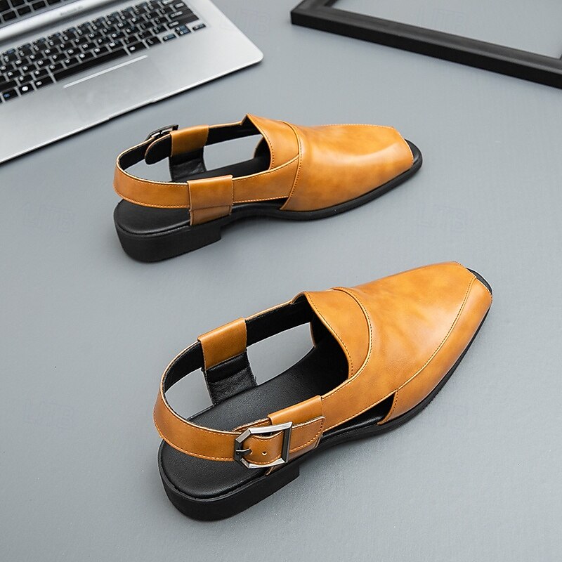 HOT ! Men's Tan Faux Leather Slingback Loafers - Fashionable Open-Toe Shoes for Warm Weather and Casual Evenings