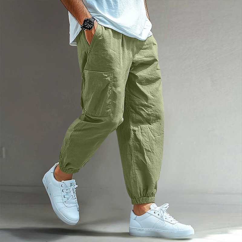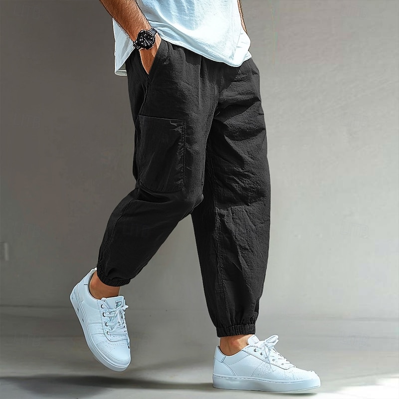 HOT ! Men's Cargo Pants Linen Pants Trousers Shorts Summer Pants Elastic Cuff Plain Comfort Breathable Full Length Casual Daily Holiday Vacation Fashion Black White Inelastic