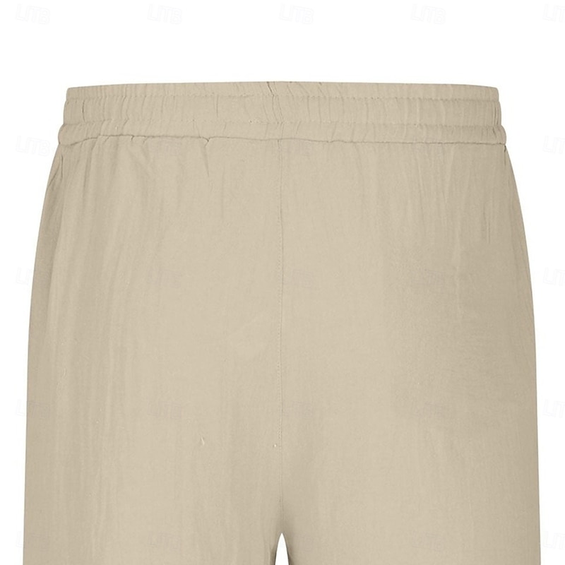 More information about Men's Cargo Pants Linen Pants Trousers Shorts Summer Pants Elastic Cuff Plain Comfort Breathable Full Length Casual Daily Holiday Vacation Fashion Black White Inelastic