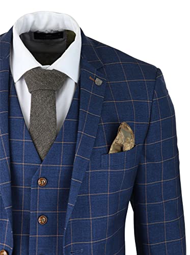 Mens 3 Piece Blue Orange Check Suit Retro Smart Tailored Fit Vintage 7