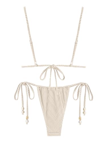 seamoly Women's Bikini Sets Ribbed Beaded Adjustable Spaghetti Strap Swimsuit Tie Side Thong Sexy 2 Piece Bathing Suit 4