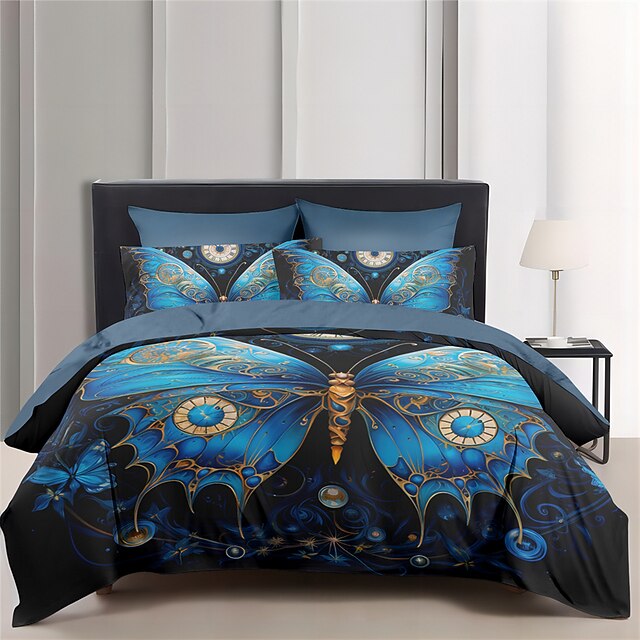 Colorful Imitation Fluorescent Butterfly Pattern Duvet Cover Set Comforter Set Soft 3-Piece Luxury Cotton Bedding Set Home Decor Gift King Queen Duvet Cover 2