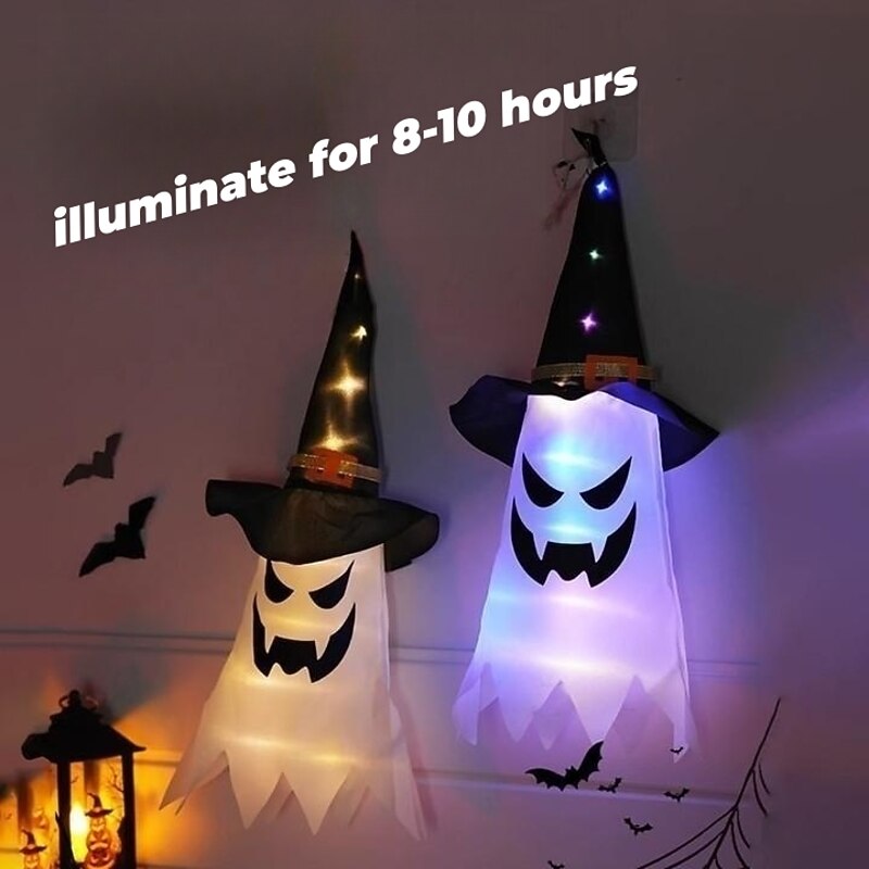 HOT ! Halloween Lighted Ghost Witch Hat Decorations Hanging Outdoor Ornaments Halloween Decor for Party Indoor Outdoor Home Tree Garden Yard