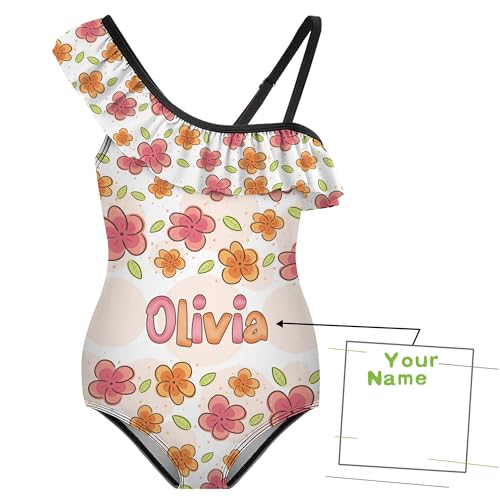 Girls One Shoulder Swimsuit‌‌ Custom Name Personalized Cartoon One Piece Swimwear Bathing Suits for Girl 6-12 Year 1