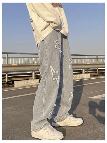 More information about SOLY HUX Men's Ripped Jeans Y2k Gothic Distressed Straight Leg Baggy Denim Pants Streetwear