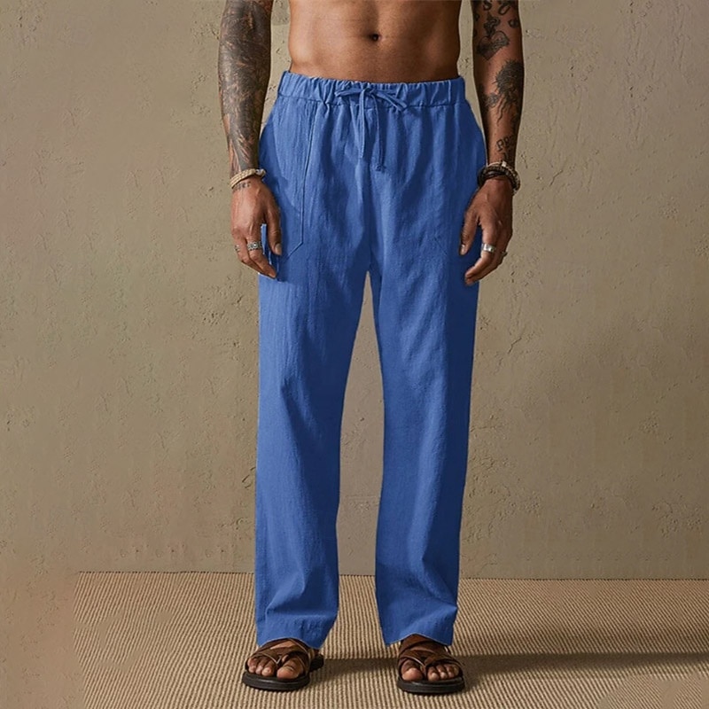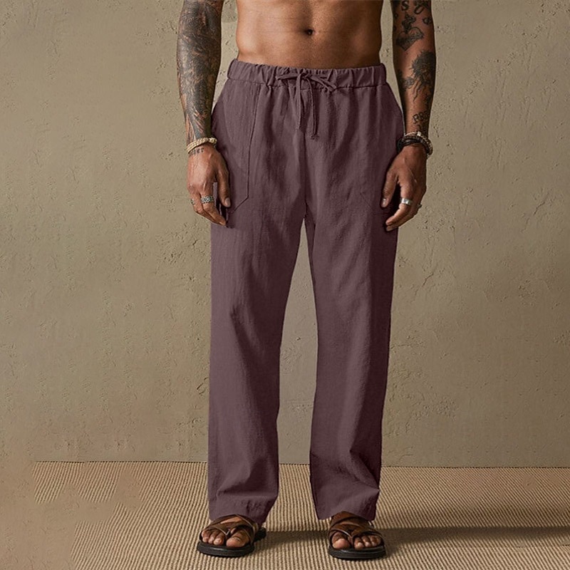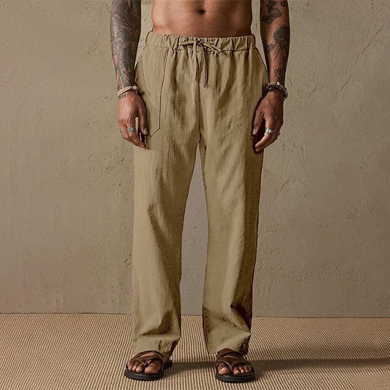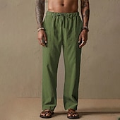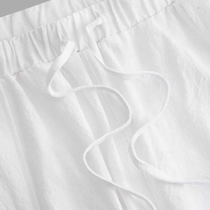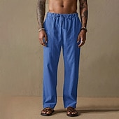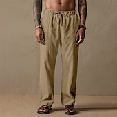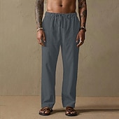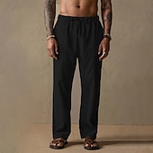 More information about Men's Linen Pants Trousers Summer Pants Gauze Pants Drawstring Elastic Waist Straight Leg Plain Comfort Breathable Full Length Outdoor Casual Daily Fashion Classic Style Black White