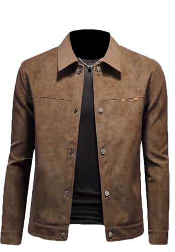 Men's Vintage Suede Blazer Single Breasted Business Casual Faux Leather Sports Jacket 5