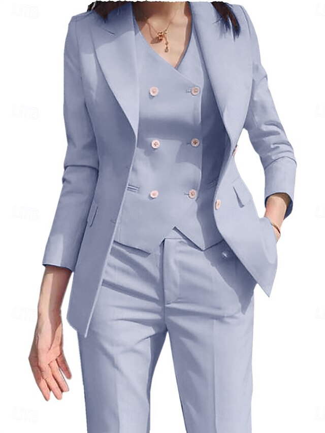 Women's 3 Pieces Suits Formal Wedding Guest Formal Evening Elegant Simple 3/4 Sleeve Pleated Ankle Length Peak Lapel Single Breasted 8