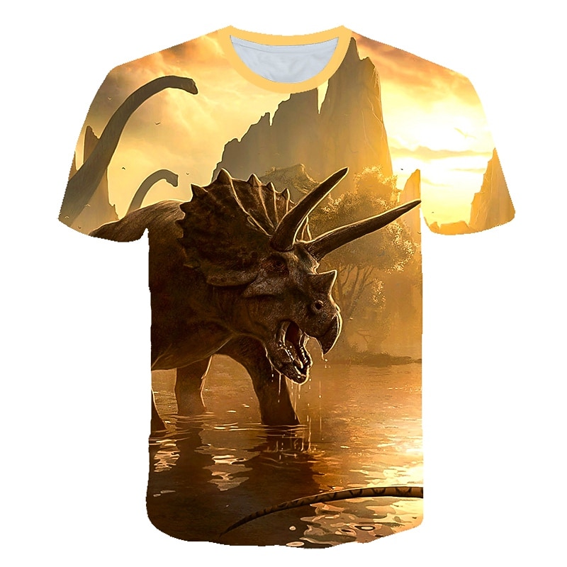 HOT ! Boys 3D Animal Dinosaur T shirt Short Sleeve 3D Print Summer Active Streetwear Cool Kids Toddler 3-12 Years School Outdoor